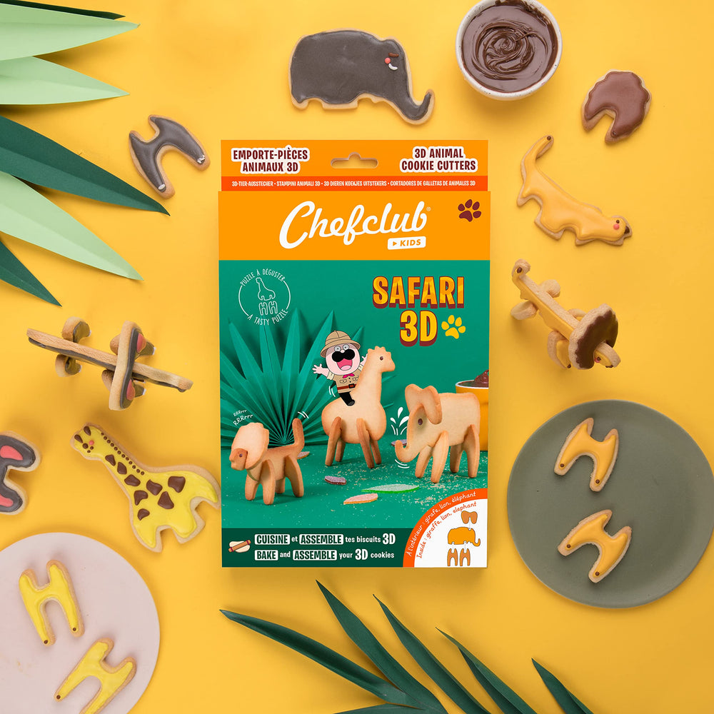 Chefclub Kids 3D Safari Cookie Cutters with Recipe Baking Set
