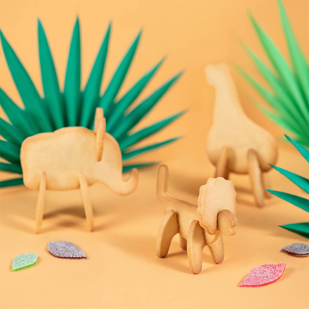Let's go on an adventure with the biscuit cutter kit to bake and assemble the 3D safari giraffe, lion and elephant biscuits!