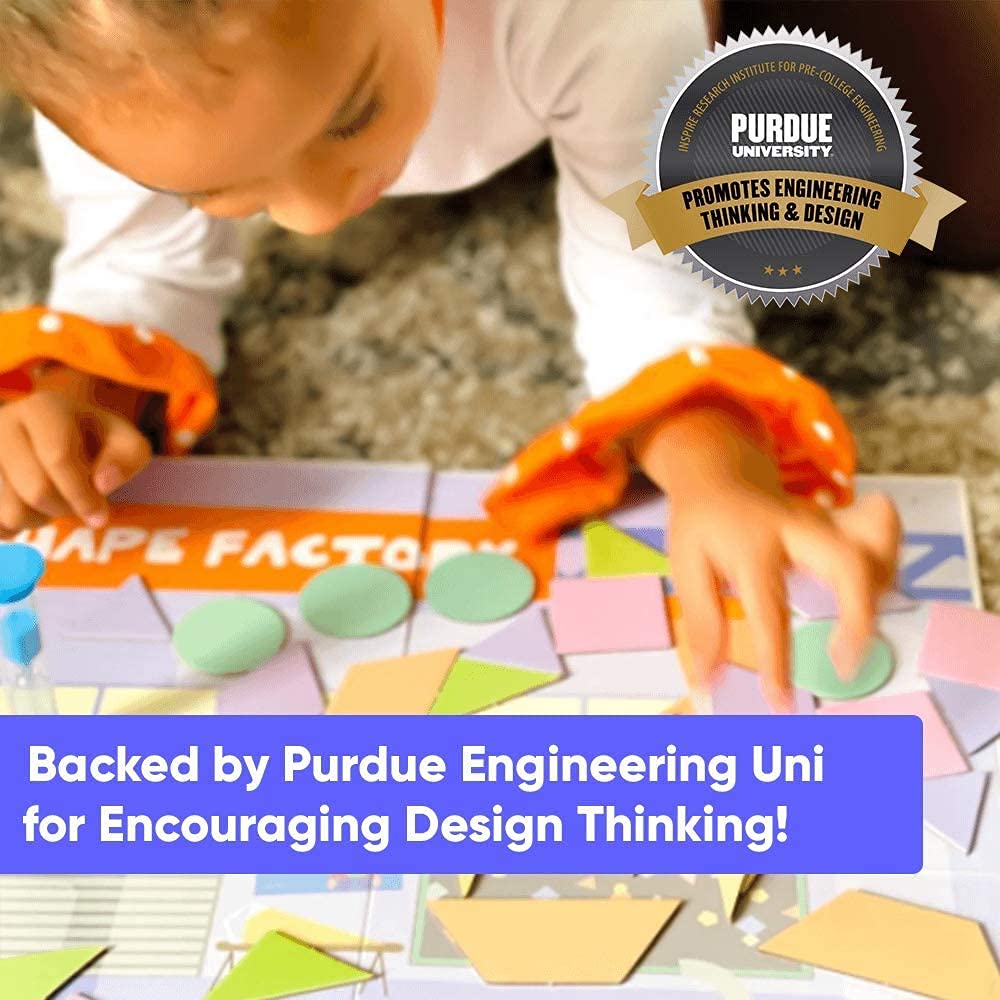 Shape Factory is a kid approved geometry board game backed by Purdue Engineering University. It develops design thinking, spatial awareness all whilst your children have tonnes of fun playing with SHAPES! Develop future skills at an early age and build a strong foundation whilst building different objects, we have designed memory games for kids ages 4-8.