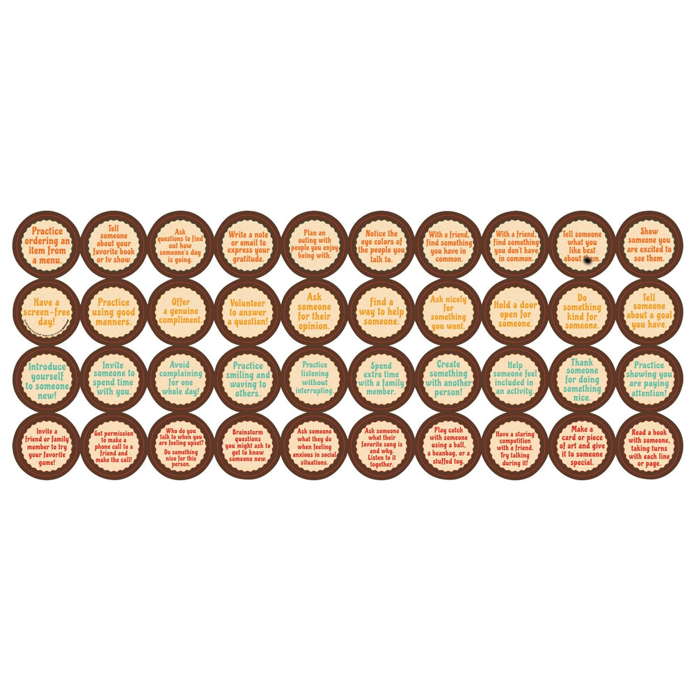 These 2.25” round chips have 40 different, kid-friendly social interaction challenges for practice with social-emotional learning.