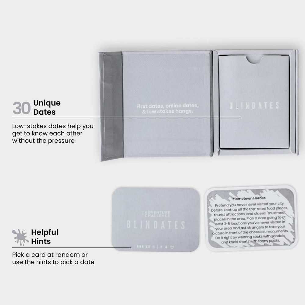 - The Adventure Challenge Blind Dates date deck low-stakes, fun ideas for you to do with any crush, online match or cutie at the coffee shop!