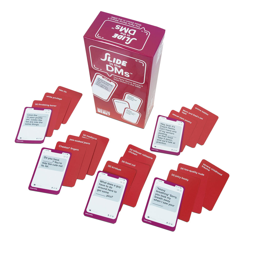 How To Play: Players rotate drawing a DM card while the rest of the group competes to play the funniest Play card. Once everyone has played their chosen Play card to submit face down, the rotating judge awards a point to the funniest one.